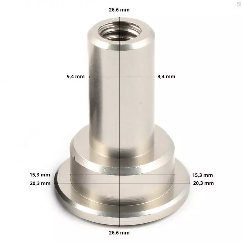 Suitable for ATC (American Tackle Company) fly reel seat models: A5, A10, AL8, AL10, 3UL and NS102. Length of the piece is approximately 26,6 mm, and the diameter of the section that fits inside the reel seat is 15,3 mm and 9,4 mm. Measurements might have some tolerance.