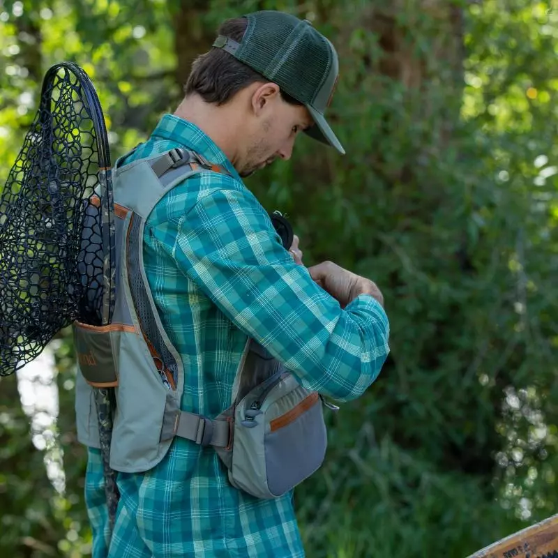 Fishpond Upstream Tech Vest – Men’s has adjustable shoulder straps, waist straps, and a front zipper closure ensure a perfect fit for a long day on the water.
