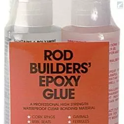 Clear, strong and waterproof Flex Coat Epoxy Glue is good choice for gluing reel seats, ferrules, butt caps, cork rings et cetera. Pot life of 20 minutes and full strength in 2 hours.