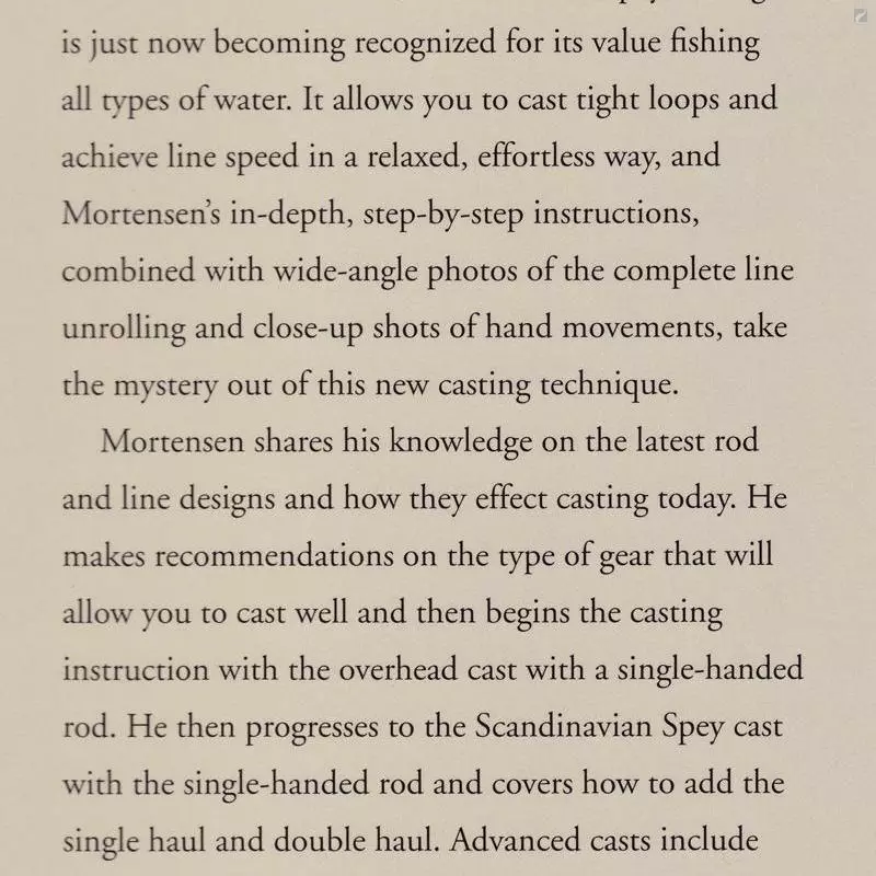 Mortensen shares the essentials of fly casting with single- and double-handed rods in the Scandinavian tradition, beginning with the basic technique of the overhead cast. An explanation of the physics of the proper cast and how the rod, line, leader & fly work as a balanced unit, tell how Scandinavian casting makes it a pleasure to cast & fish. The author covers the tried&true -knots that are best for this style of casting & how to add the single & double haul to your casts.