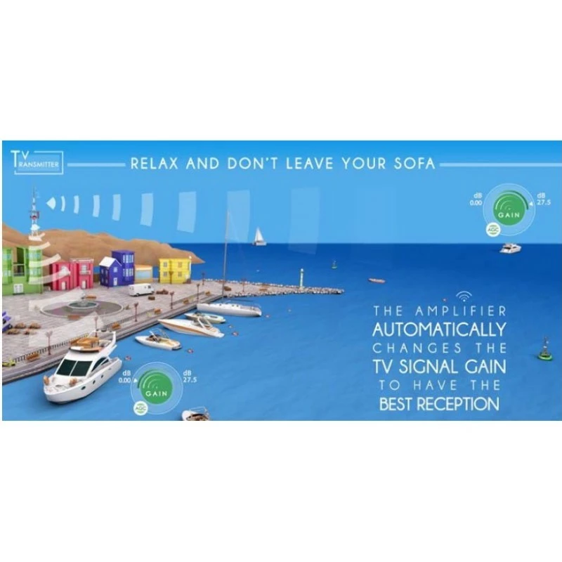 With conventional amplifiers, in fact, you have to manually adjust the TV signal gain by lowering the amplification when the signal is high and by increasing the amplification when the boat is at sea and far from the TV transmitter. With the new AGC amplifier, everything will happen automatically and it can be placed in a hidden location inside the boat