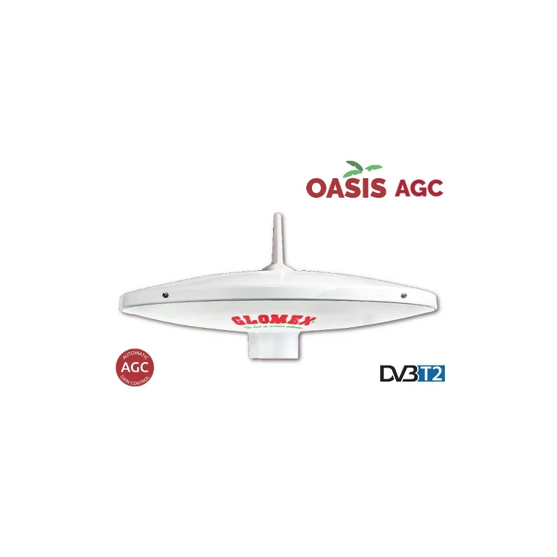 With conventional amplifiers, in fact, you have to manually adjust the TV signal gain by lowering the amplification when the signal is high and by increasing the amplification when you are far from the TV transmitter. With the new Oasis AGC, everything will happen automatically and the innovative amplifier can be placed in a hidden location inside the RV. Oasis AGC is easy to install and provided with all necessary accessories for installation: support for roof installation, 5m (16.5’) coaxial cable, 1,5M (5’) TV cable and AGC amplifier. Moreover, Glomex offers a wide range of optional accessories.