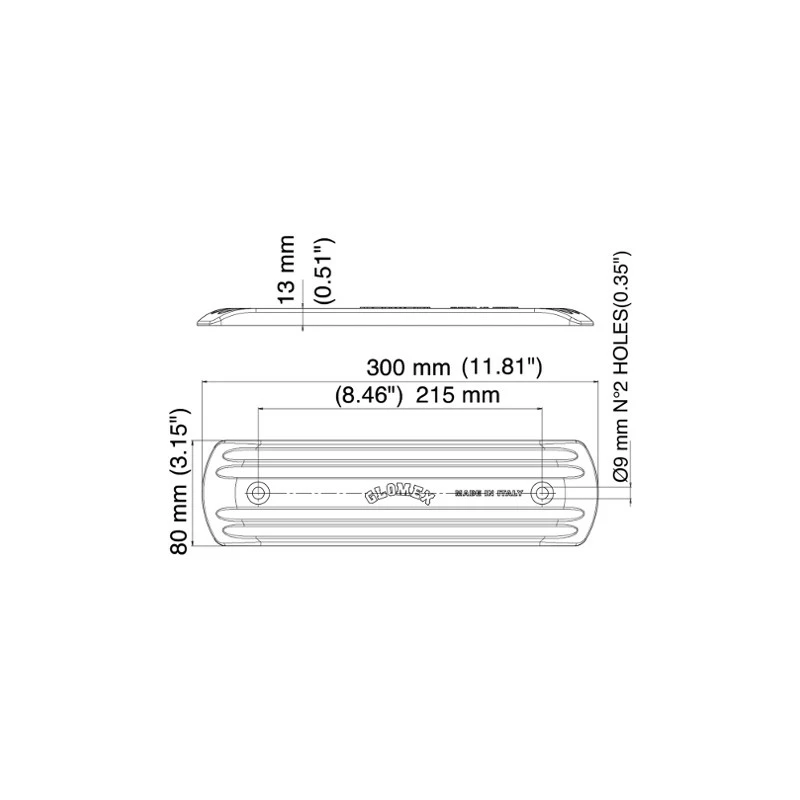 RECTANGULAR GROUND PLATE β DIMENSIONS 300X80X13 MM (12X3XΒ½β) β EQUIVALENT SURFACE 3,45 MΒ² (37,1 FTΒ²).