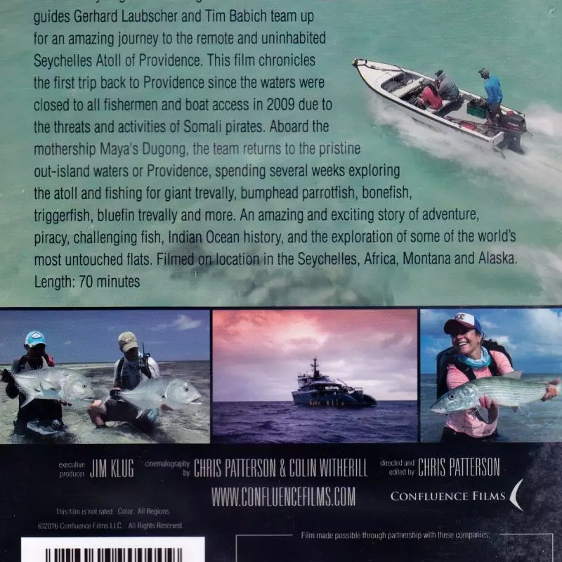 In the fifth full-length fly fishing film from Confluence’s Chris Patterson and Jim Klug, Yellow Dog Flyfishing’s Camille Egdorf, and South African guides Gerhard Laubscher and Tim Babich team up for an amazing journey and a return to the remote and uninhabited Seychelles atoll of Providence. The new film chronicles the first trip back to Providence Atoll since the waters were closed to all fishermen and boat access in 2010 due to the threats and activities of pirates operating out of Somalia.