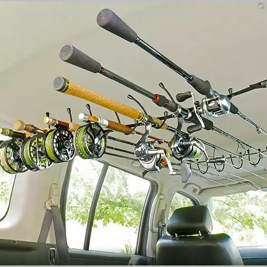 If your rods are longer than the vehicle interior, simply detach and fold over the tip section, tension both the forward and rear shock cords to secure.