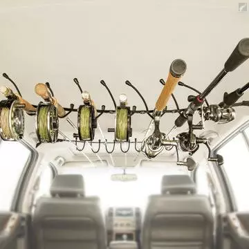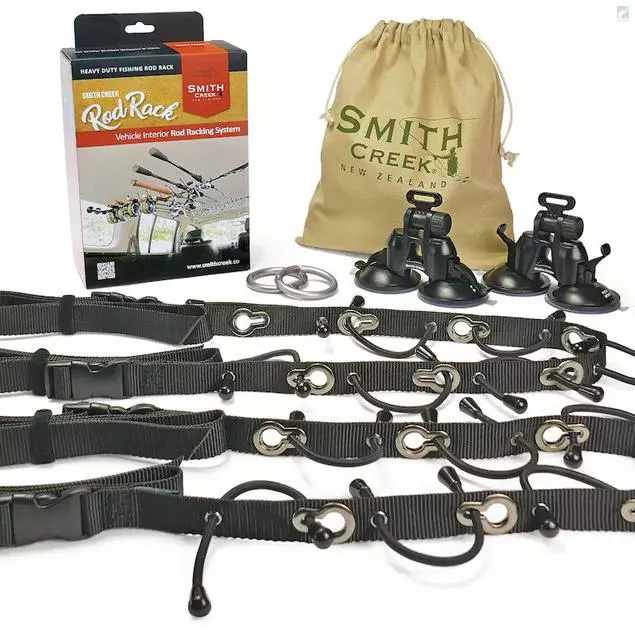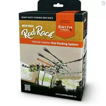 The Smith Creek Rod Rack is the heavy-duty universal fishing-rod rack for SUV’s, Station Wagons and Vans. The innovative and patented racking system holds seven rod and reel combinations overhead out of the way. Easy to use locking shock cord holders secure and support rods without rattles or damage even on the roughest roads. Rods are easily racked and kept highly accessible. Rods and reels can be carried full length rigged-up or broken-down to fit. Fitted inside a vehicle in a minute, the system can also be rolled up and stored into its’ compact carry bag in seconds.