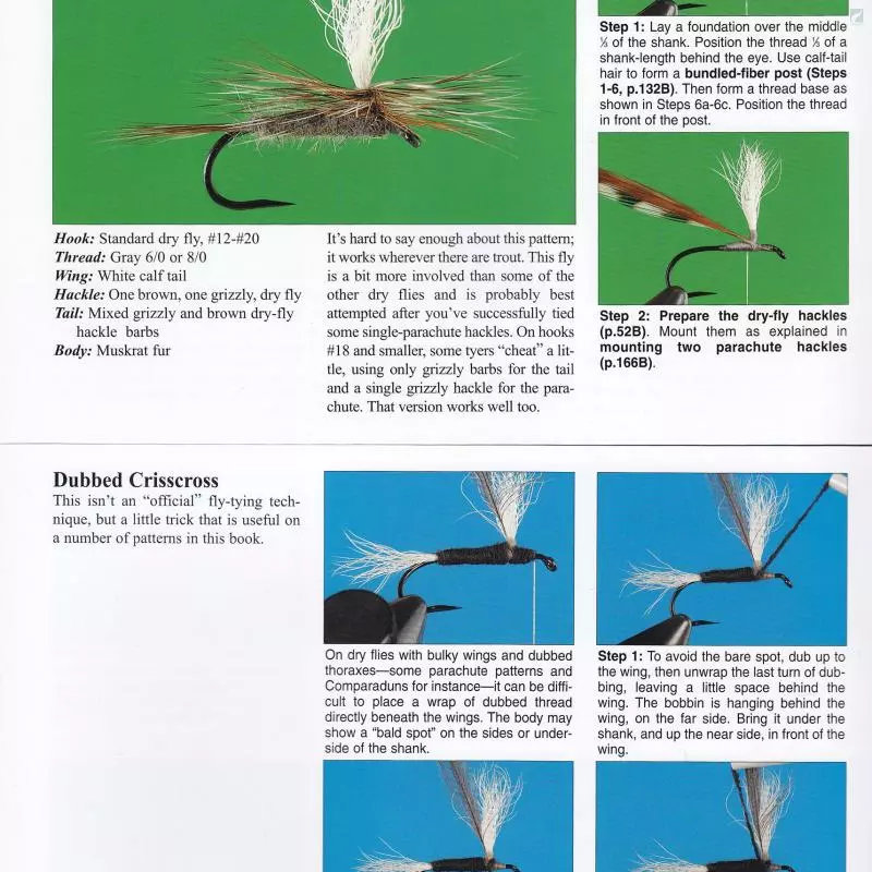The first 50 pages of this oversized, spiral-bound book are filled with fly-tying techniques, the last 150 pages are cut horizontally across the page. The top half of the page shows the tying steps for 100+ of todays best patterns, and includes references to techniques that are explained and pictured in the bottom half. This unique format allows detailed instructions on each specific step/technique required to tie the fly– more then 100 patterns in all!