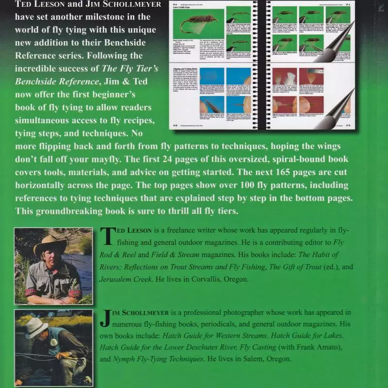 Renowned writing team Ted Leeson & Jim Schollmeyer have set another milestone in the world of fly tying with this unique new addition to their Benchside Reference series. Following the incredible success of The Fly Tier’s Benchside Reference, Jim & Ted now offer the first beginner’s book of fly tying to allow readers simultaneous access to fly recipes, tying steps, & techniques. No more flipping back & forth from fly pattern to technique, hoping the wings don’t fall off your mayfly.