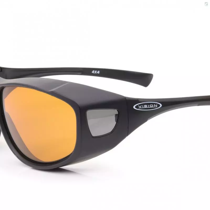 Vision 4X4 Sunglasses are designed to be worn with the glasses. Polarized. Pouch included. Frames made in France.